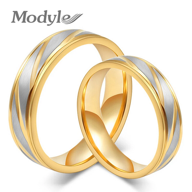 Modyle Baru Fashion Pria Dan Wanita Cincin Kawin Warna Emas Cincin Pasangan Stainless Steel Pernikahan Cincin Untuk