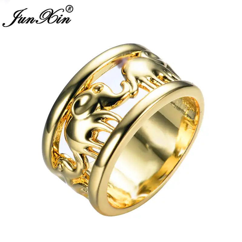 Junxin Cute Gold Elephant Design Women Fashion Jewelry Ring 10kt Yellow Gold Filled Finger Rings For Women Men Gift