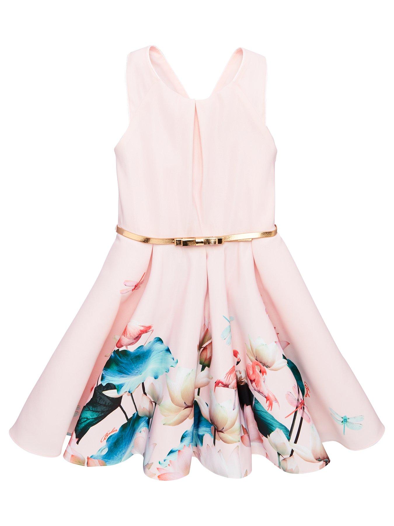 Baker By Ted Baker Girls Flamingo Border Ottamon Dress Pale Pink