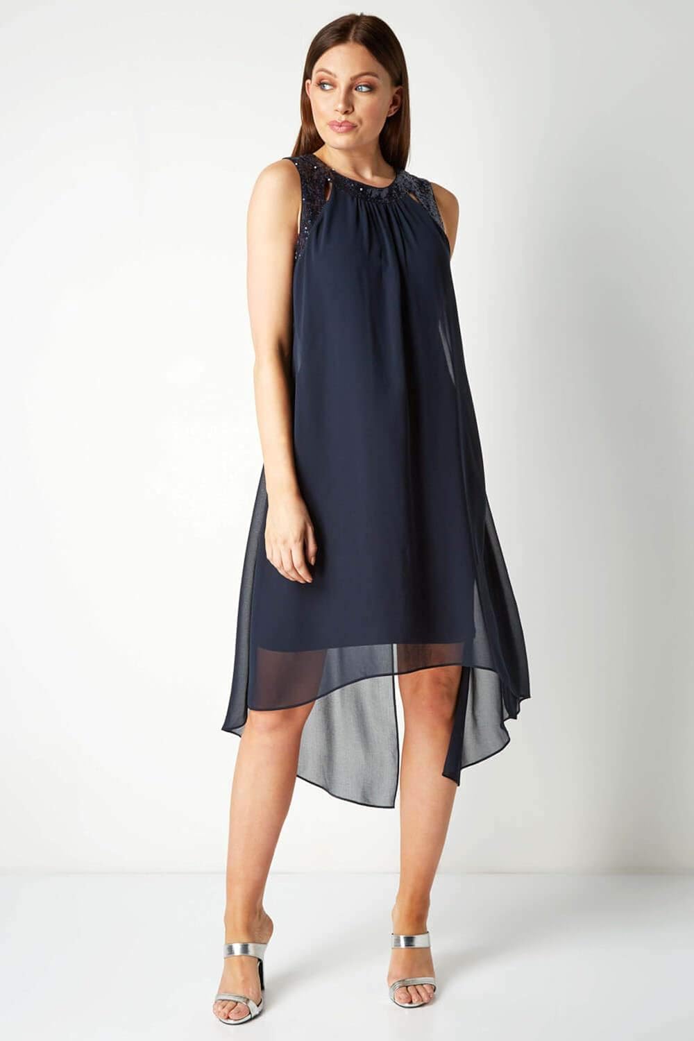 Clothing Roman Originals Women Cut Out Sequin Neck Floaty Dress