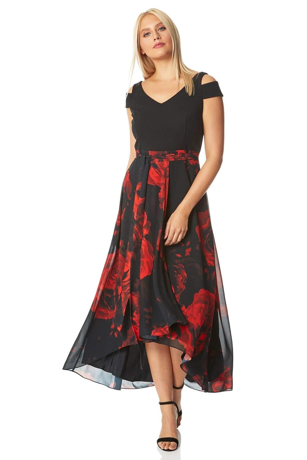 Roman Originals Women Floral Print Cold Shoulder Maxi Dress